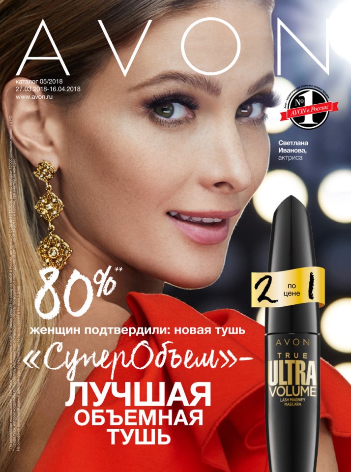 Каталог AVON 5 2018 представляет актриса Светлана Иванова, которой очень понравилась новая тушь! С тушью "Суперобъем" твои ресницы великолепны с любого ракурса.